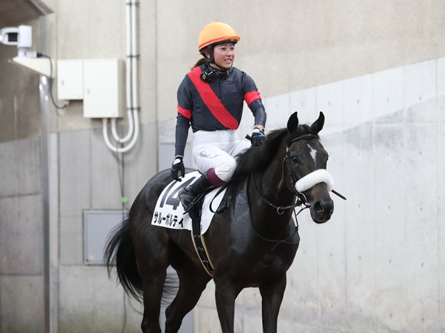 「君に乾杯」(スペイン語)の意。母名より連想。なんともロマンティックな名を授かった。最高の名誉をつかんで開催される祝勝会。レースリプレイで心を高ぶらせ、グラスを手にしたあとに発する言葉はもちろん。 |